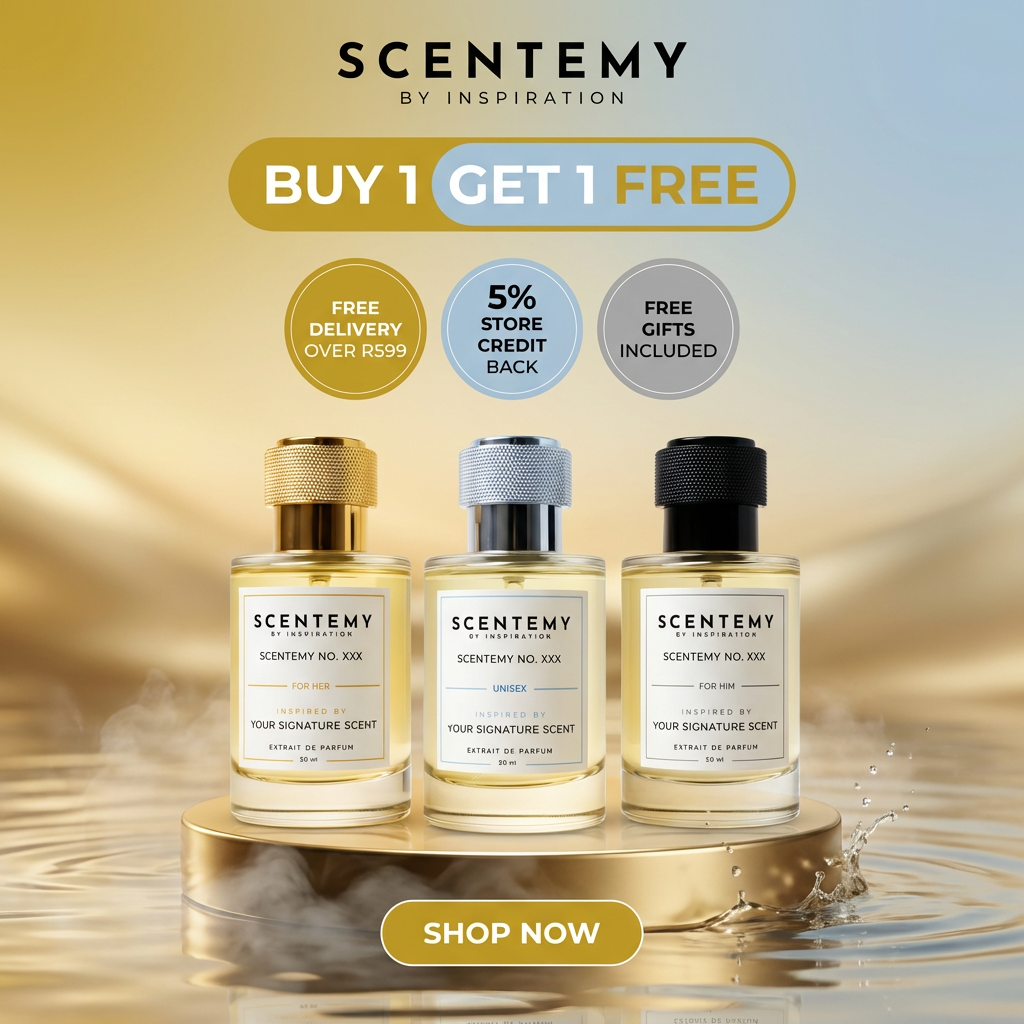 Every fragrance includes Buy 1 Get 1. Earn 5% back in store credit, enjoy free delivery over R599, and receive a free gift on orders over R1 000.